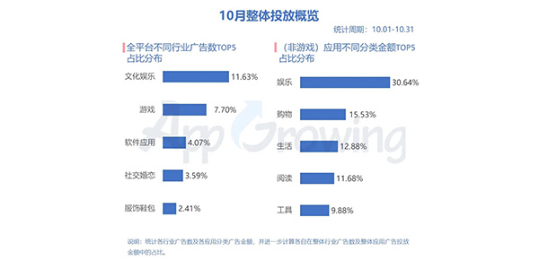 App Growing根据2020年10月份(10月1日-10月31日)追踪到的移动广告情报,梳理出以下10月份行业概览&头部广告主。